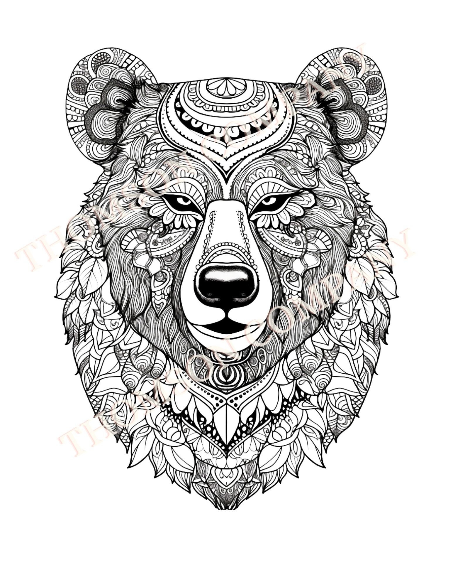 4 Bear With A Tribal Designs Adult Coloring Pages Printable PDF Coloring Book Page AI Generated Image Etsy
