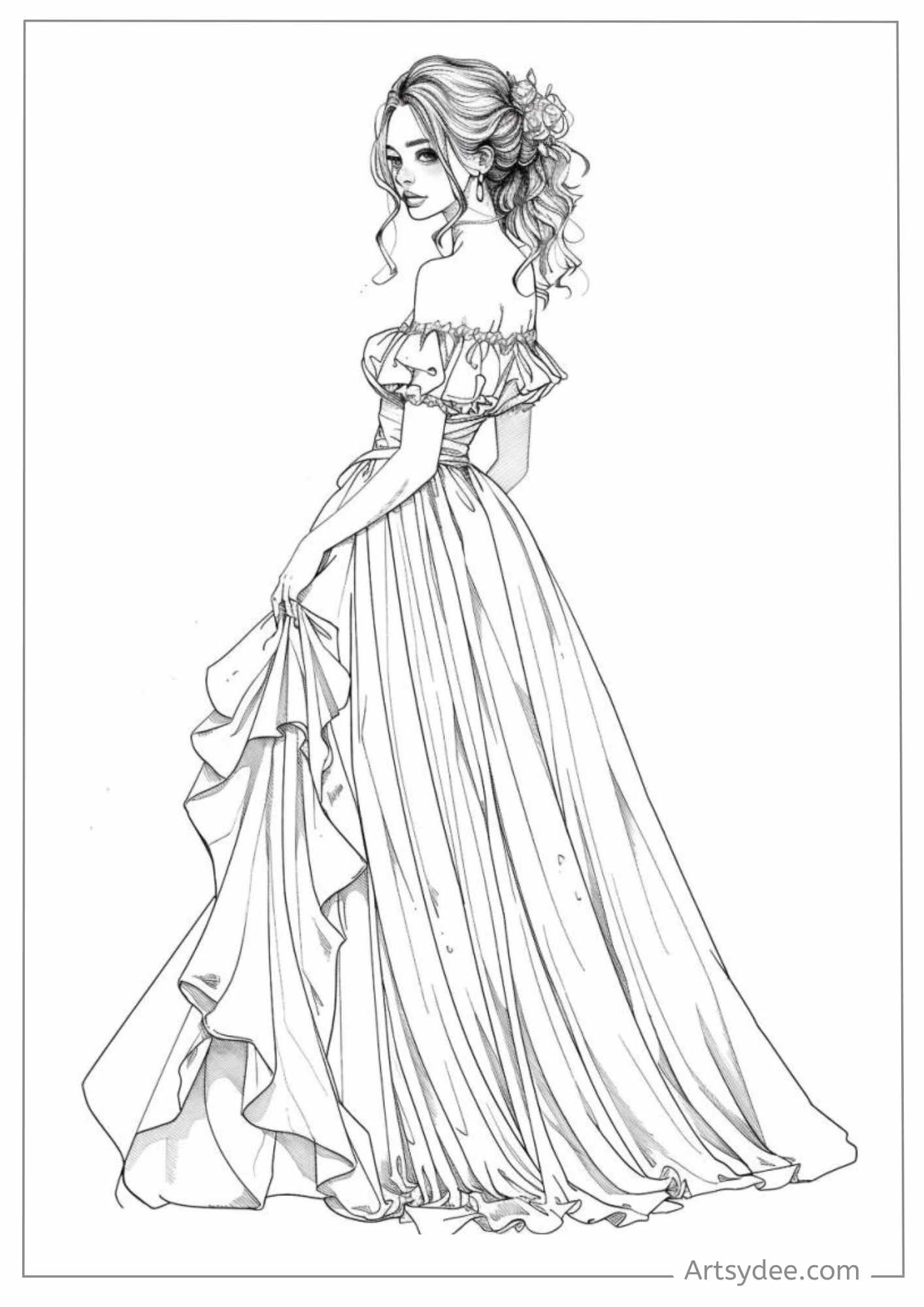 Ball Gown Dress Coloring Pages Free Printable
