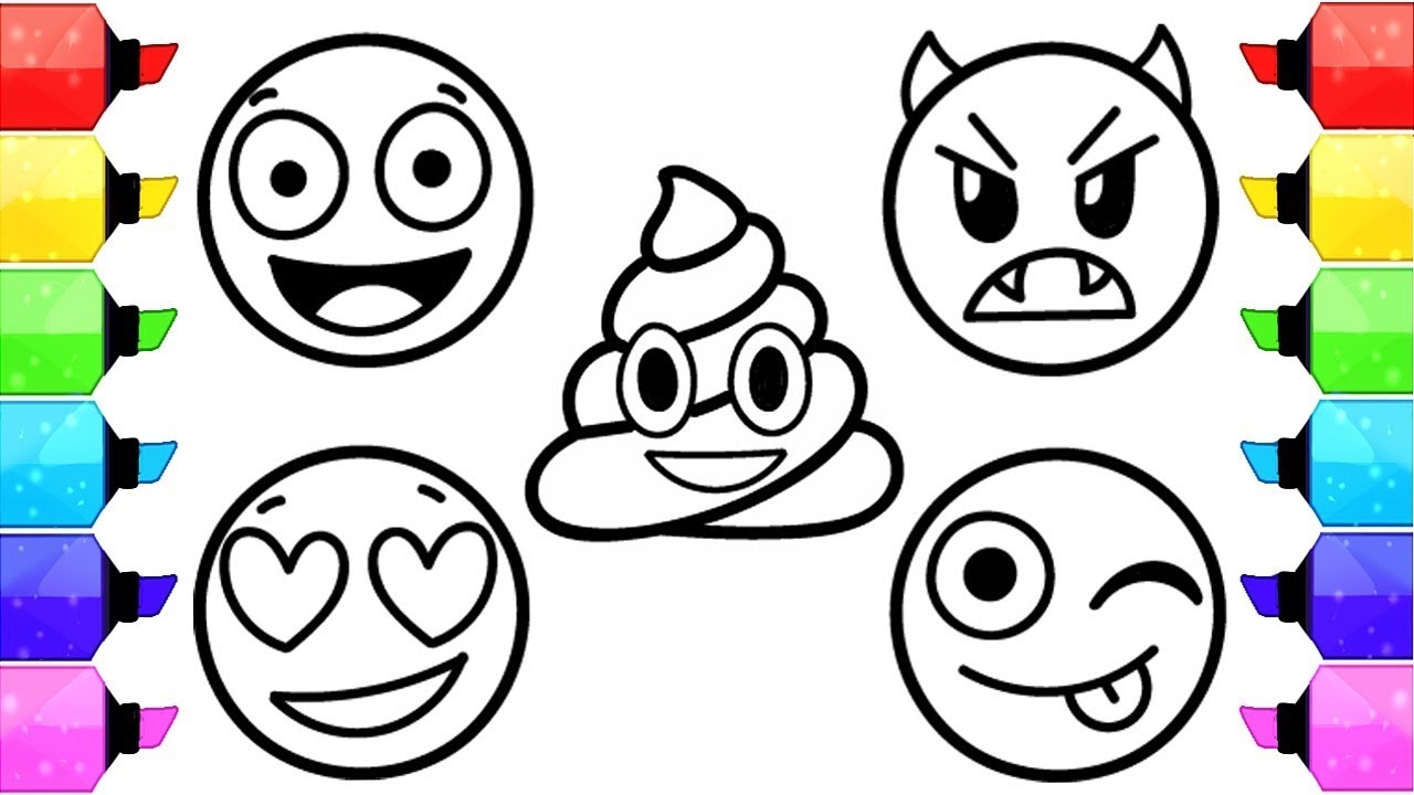 EMOJI Coloring Pages How To Draw And Color Emoji Faces Kids Learn Colors With Coloring Pages YouTube