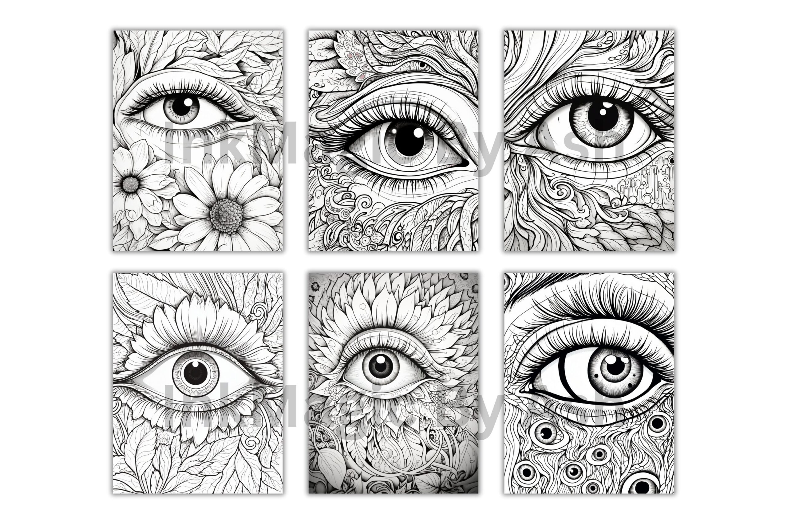 50 Floral Eye Coloring Pages Adults And Kids Coloring Book Greyscale Digital Coloring Sheets Instant Download Printable PDF File Etsy